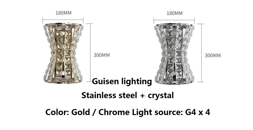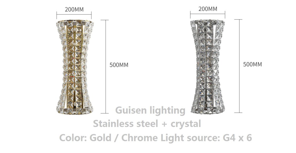Color: Gold & Chrome, Size: 180 x 300mm, 200 x 500mm, Light source: G4 x4, G4 x 6
